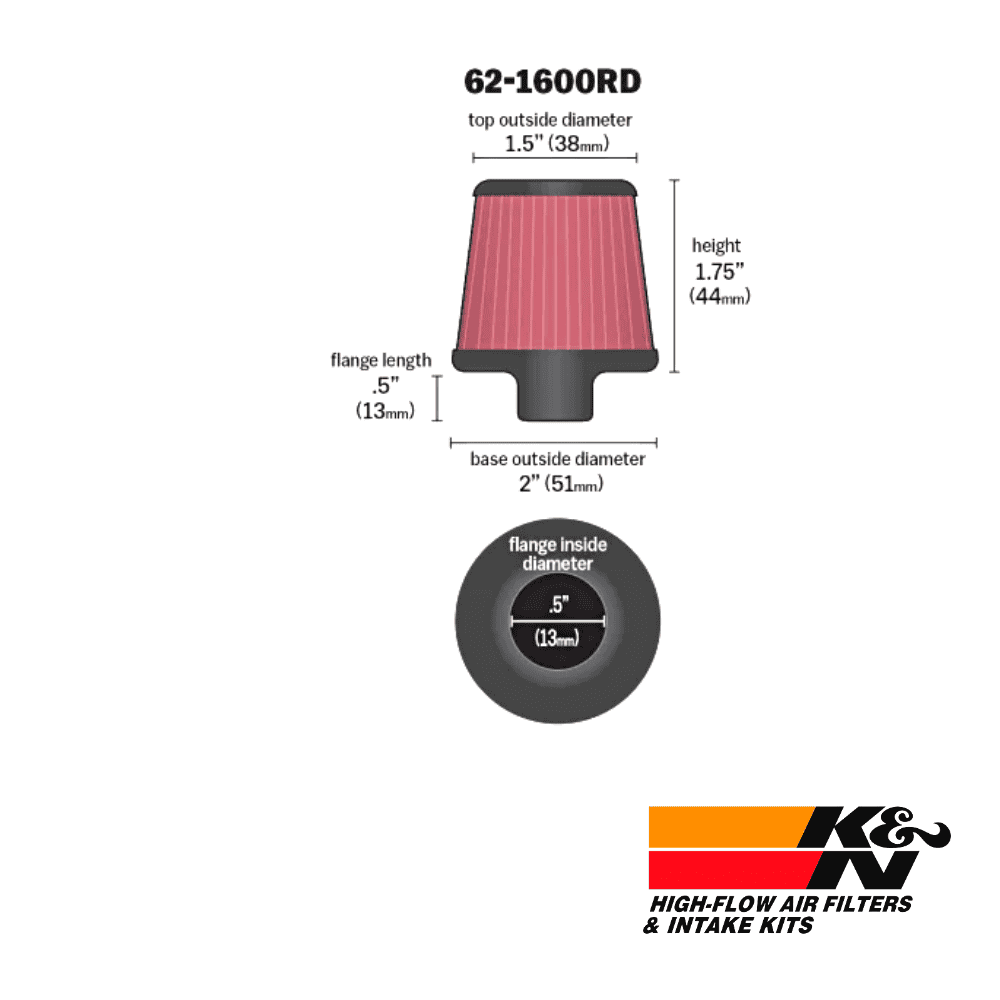 62-1600RD – K&N VALVE BREATHER (F-0375inch (10mm) x H-1.75Inch (44mm) )