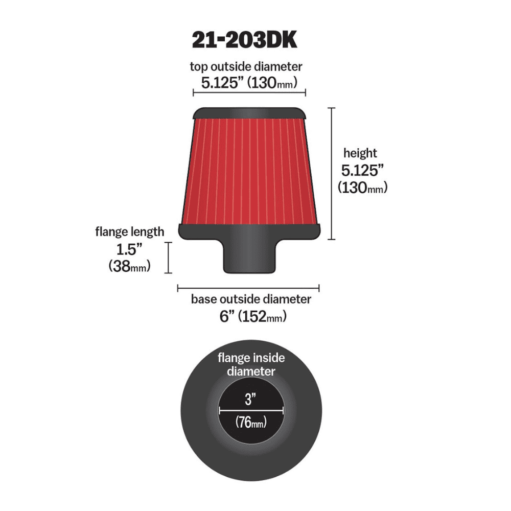 AEM DRYFLOW UNIVERSAL AIR FILTERS 3″F X 5.125H”