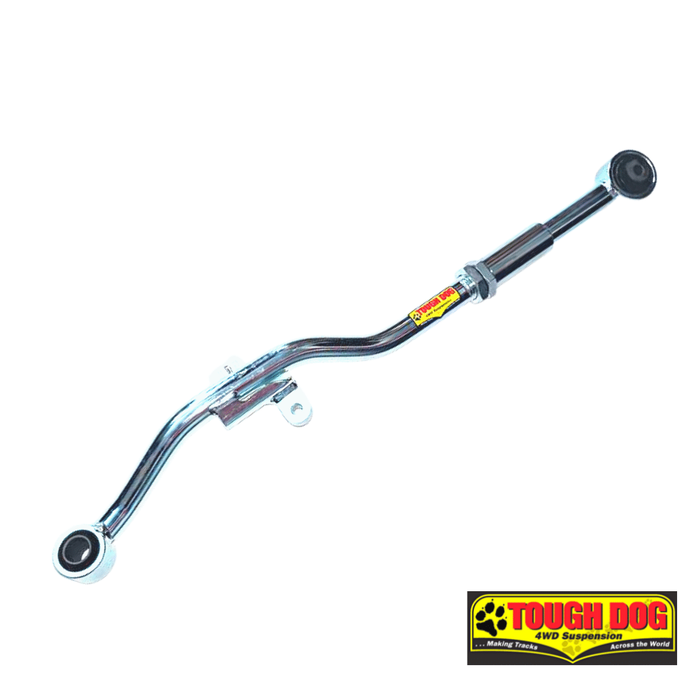 Adjustable pan hard rods allow the axle to be re-centred under the vehicle after the height has been modified. Tough Dog pan hard rods are bent from a single solid bar for strength, and are adjustable to cover a broad range of vehicle heights.